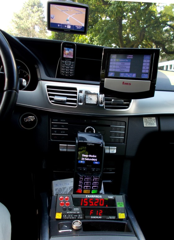 - Navi (3x vorhanden: TomTom, im Display des Taxifunks und fest eingebaut von Mercedes)