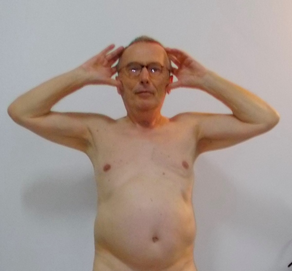 Sam hat gefilmt, wie das aussieht, wenn ich hier sitze und schreibe: Krummer Rücken und Bauch. Höchste Zeit, zu meinen himmlischen Freunden zurückzukehren.
