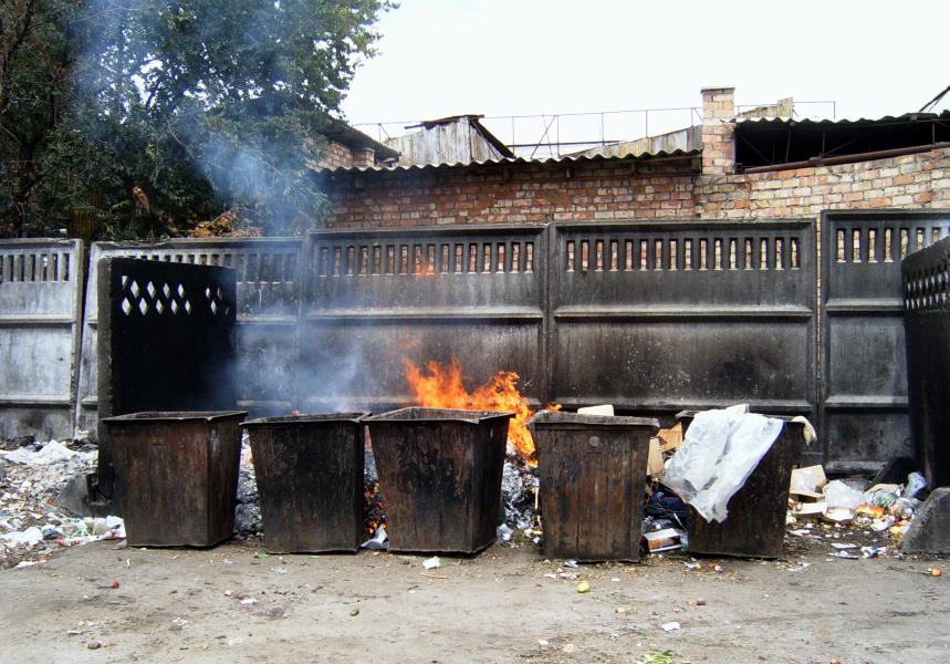 Brennender Müll hinter einem Supermarkt in Bishkek / Kirgistan. Die Müllmänner stecken Brennbares an, um es nicht transportieren zu müssen.