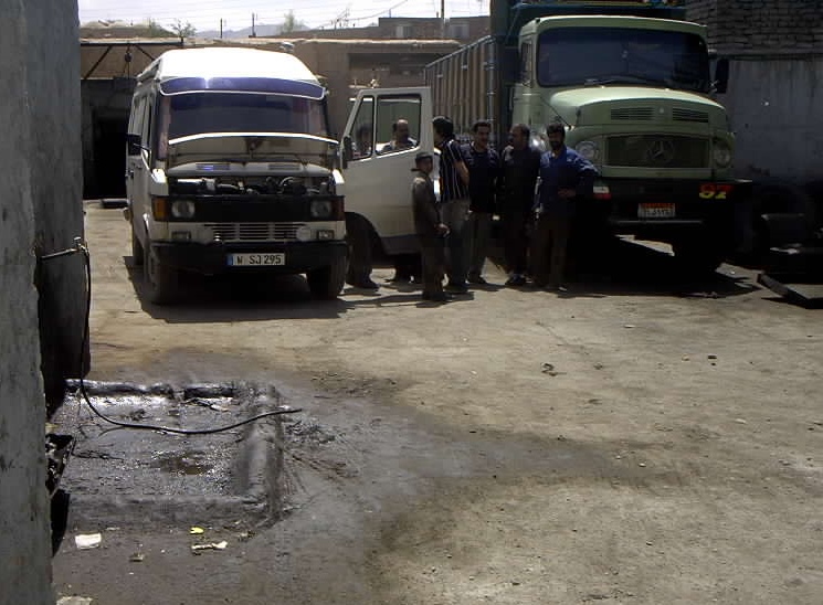 Autowerkstatt in Birjand / Iran mit Altölentsorgung (vorn links)