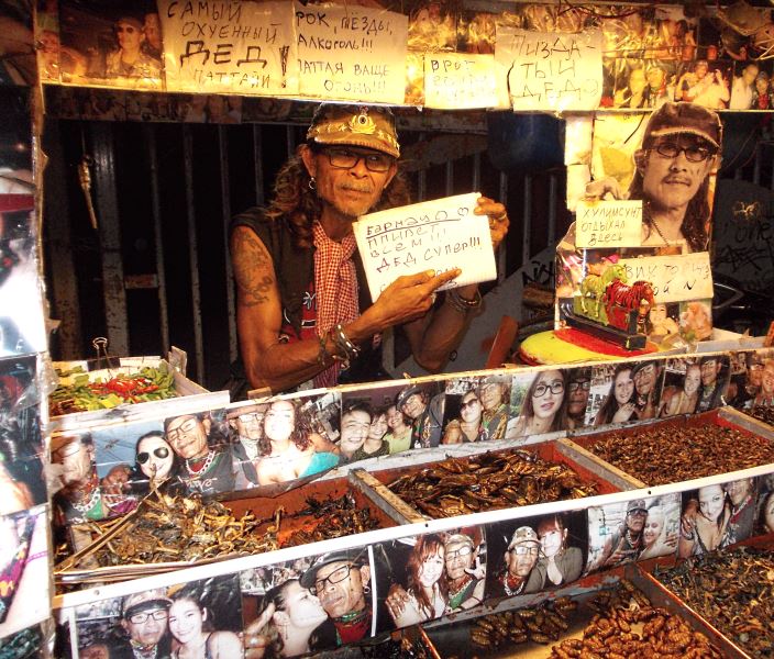 Verkäufer gegrillter Insekten in Pattaya / Thailand