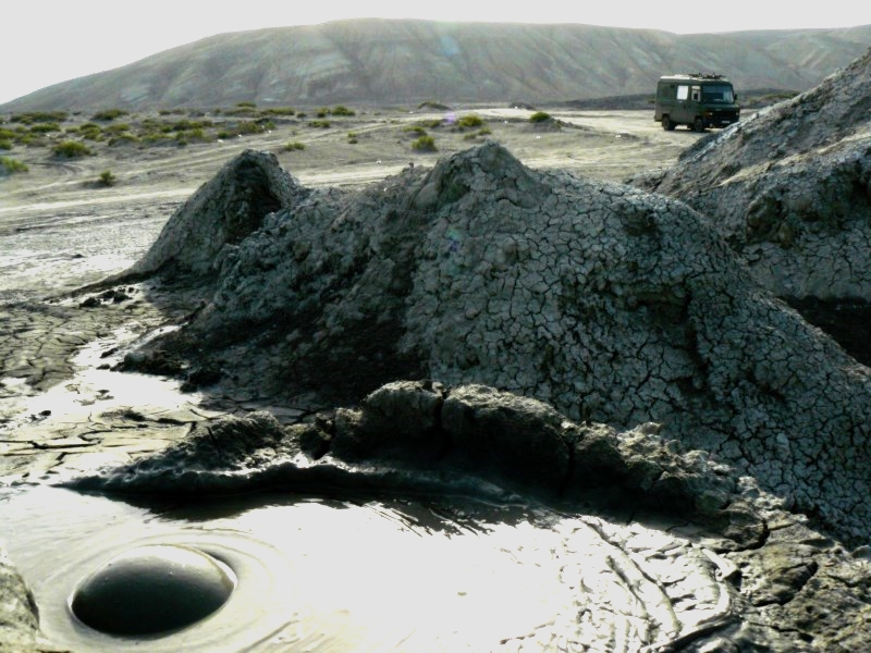 Schlafplatz im Krater eines Schlammvulkans südlich Baku / Aserbaidshan