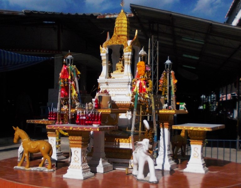 Geisterhaus vor einem Basar in Pattaya / Thailand