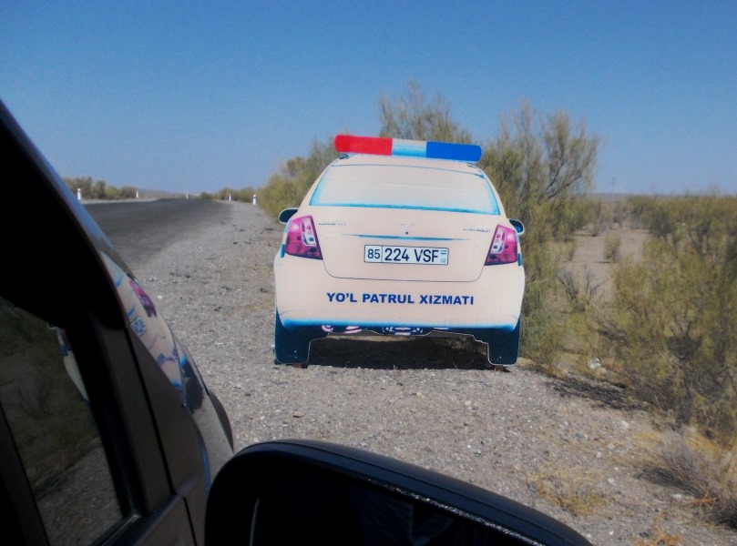 Polizeiautoatrappe in der Kysylkum (rote Wüste) in Usbekistan
